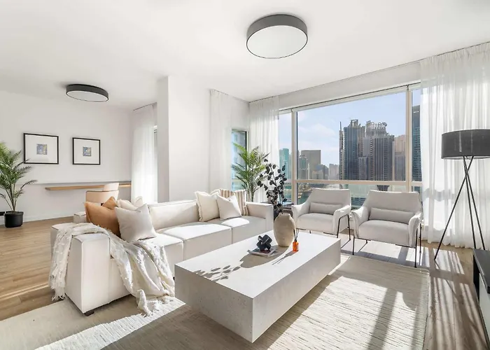 Silkhaus Chic 3Bdr & Maid Room In Dubai Marina est niché dans le quartier "Dubaï Marina" à Dubaï, à proximité immédiate de Marina de Dubaï. La résidence se trouve à 5 minutes à pied d'Industrial Avenue, tandis que la station de métro Nakheel est à moins de 10 minutes de marche. L'appartement est niché à 15 minutes en voiture de Wild Wadi Water Park.